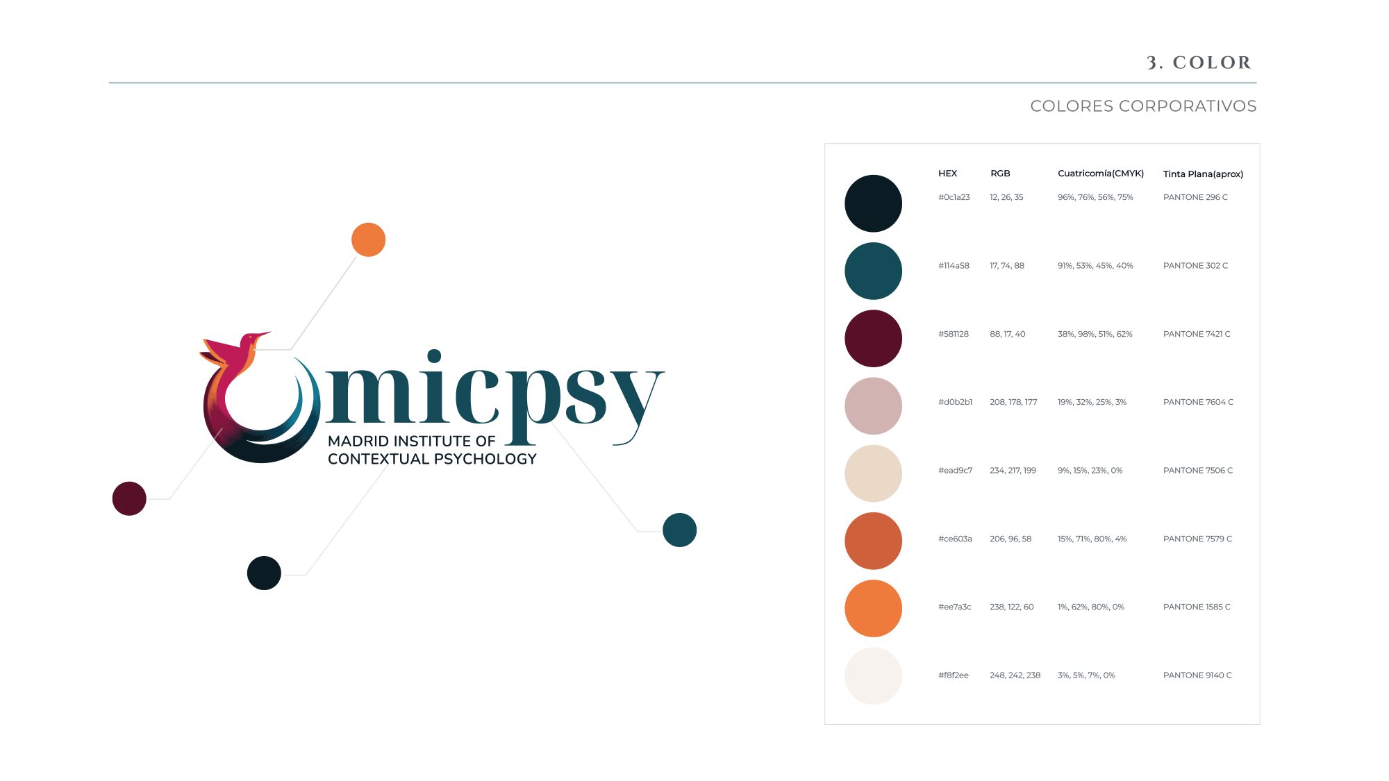 Este proyecto fue desarrollado en colaboración con Marina Carrión. Juntos llevamos a cabo un restyling completo del logotipo original de Micpsy, actualizando su identidad visual para alinearla con su posicionamiento actual como institución académica de vanguardia en el ámbito de la salud mental.