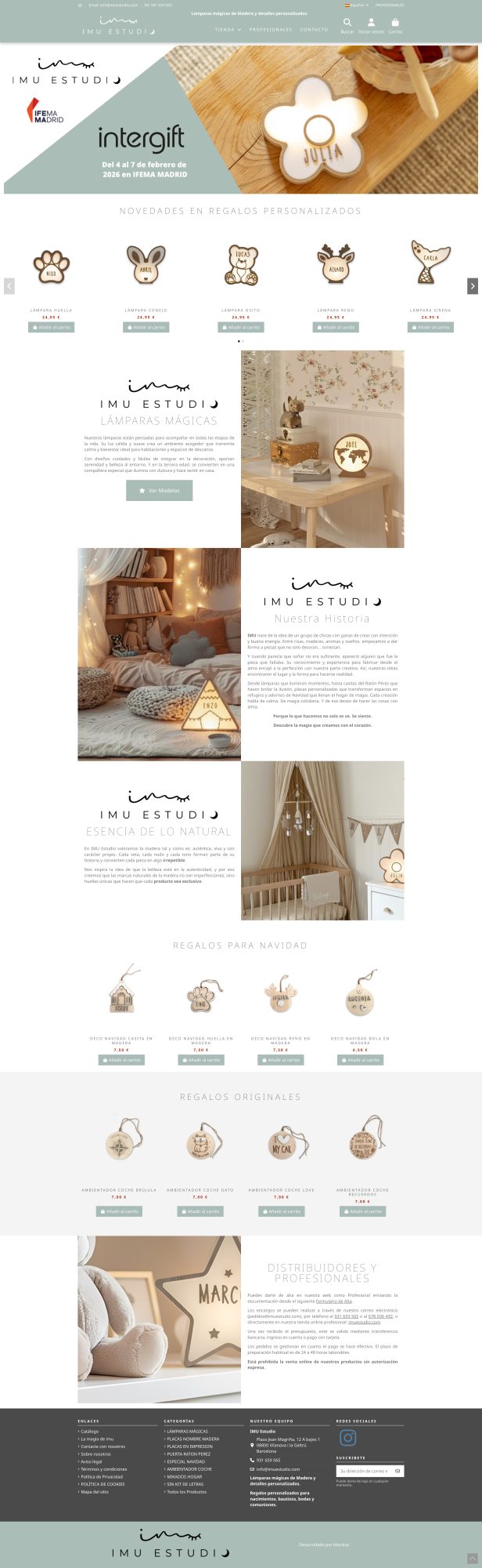 Desarrollo de la tienda online IMU Estudio, marca especializada en iluminación y piezas decorativas con identidad artesanal e industrial. La web está construida sobre PrestaShop, con un enfoque visual cuidado y una experiencia de compra clara y elegante.